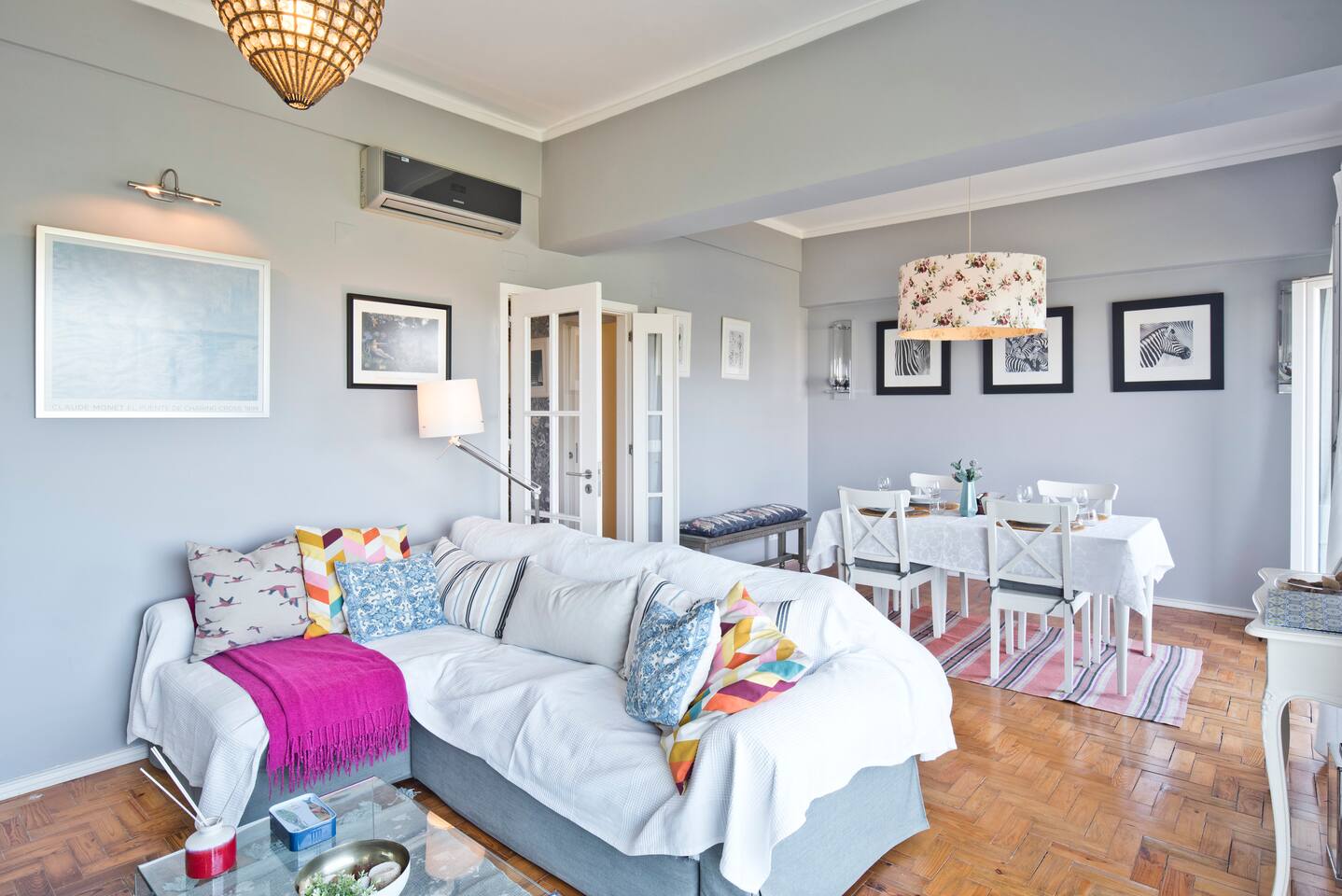Discover the allure of Lisbon from our elegant and stylish apartment. Sunlight pours through large windows and balcony doors, creating a bright, welcoming atmosphere with breathtaking views over the lush greenery of Park Eduardo VII and the iconic Four Seasons Ritz hotel. The spacious living area is perfect for relaxing after a day of exploring. Our home is designed for your comfort and convenience, featuring: * A serene bedroom with a cozy, large bed for a restful night's sleep. * Air conditioning in both the bedroom and living room. * Soundproofing from double-glazed windows to ensure a peaceful stay. * A fully equipped kitchen for preparing your favorite meals. * High-speed fiber optic internet for remote work or streaming. * Entertainment with over 100 TV channels and a complimentary Netflix subscription. * Family-friendly amenities including a baby cot/crib, high chair, and baby bathtub available upon request.